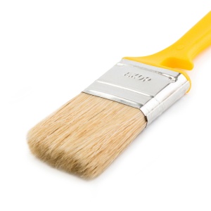 Флейцевые кисти «Эксперт», толщина 10-12 мм., светлая натуральная щетина, желтая пластиковая ручка с возможностью крепления на емкости с краской.
