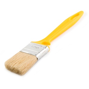 Флейцевые кисти «Эксперт», толщина 10-12 мм., светлая натуральная щетина, желтая пластиковая ручка с возможностью крепления на емкости с краской.